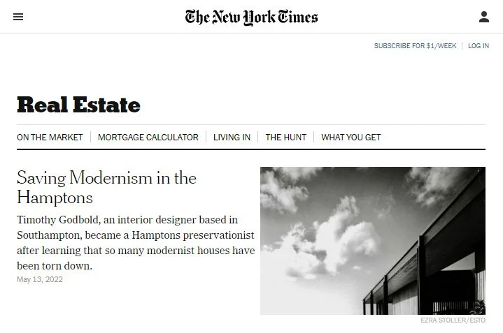 The New York Times Real Estate Section covered our work in the Hamptons in a story about the broader efforts to preserve modernist houses in the Hamptons